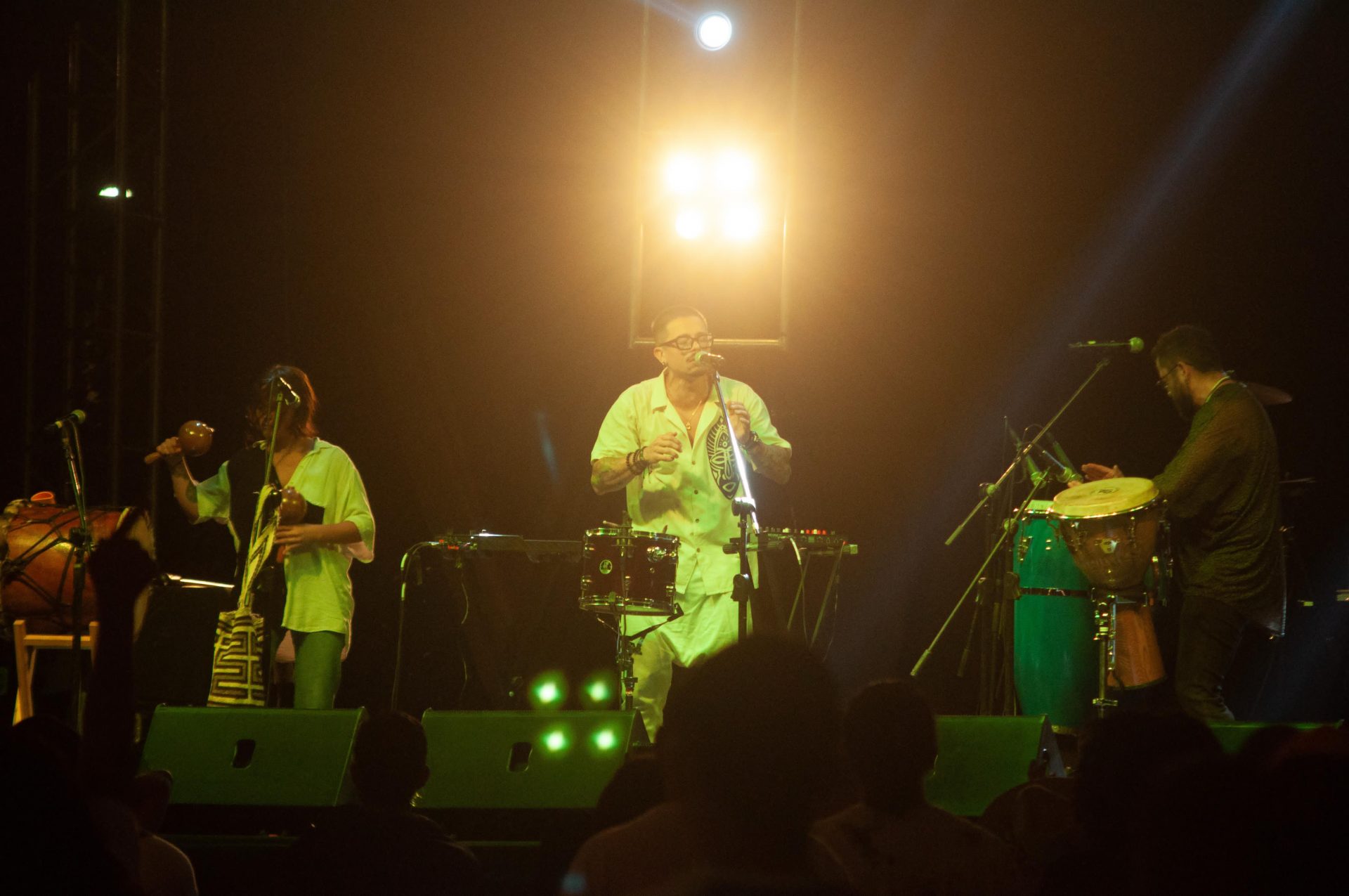 His live show consists of 3 musicians on stage: Guadalupe on drums, gaita, and singing, Julian Ramirez on percussion and choirs, and Killabeatmaker charismatic performer who also beatboxes, raps, and sings.